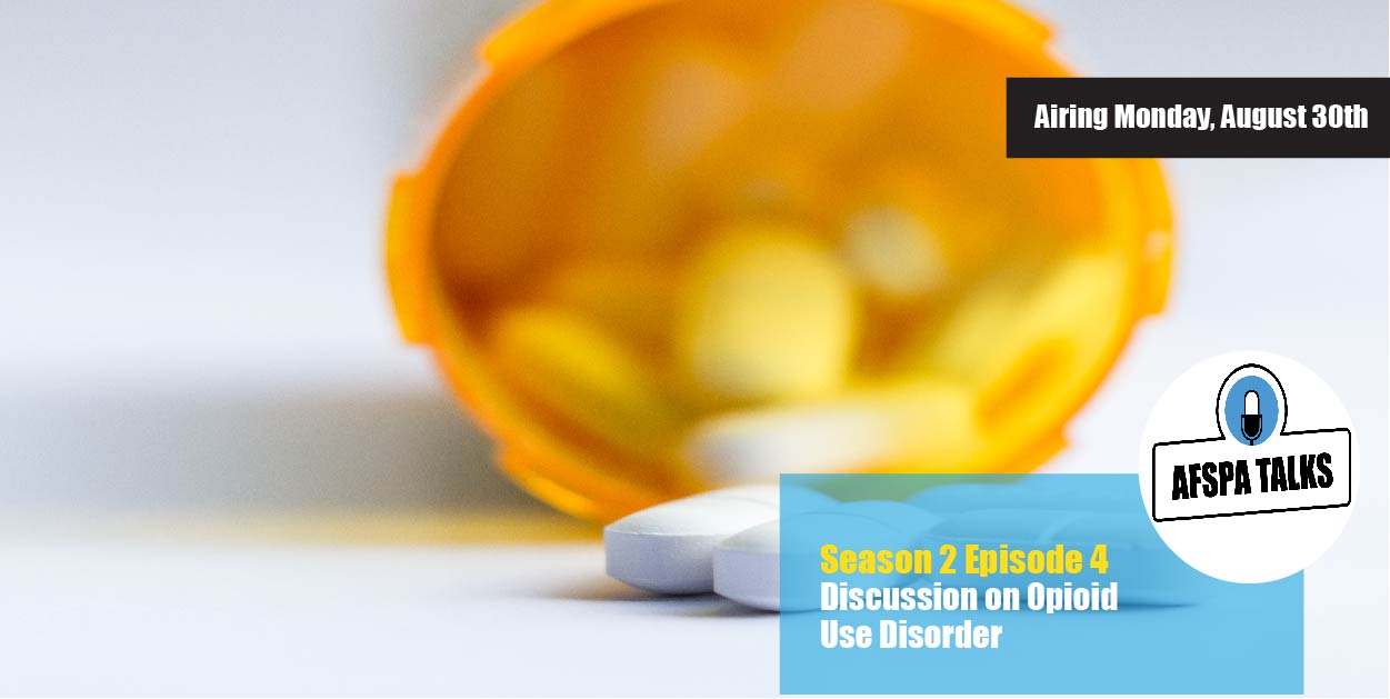 In this episode of AFSPA Talks, COO Kyle Longton brings us through a discussion on opioid use disorder with pharmacist Katherine Lurk and clinical psychologist Becky Parker. The three take an in depth look at the opioid epidemic, removing the stigma surrounding opioid overdoses, how to get help if you’re struggling with opioid misuse, and more.